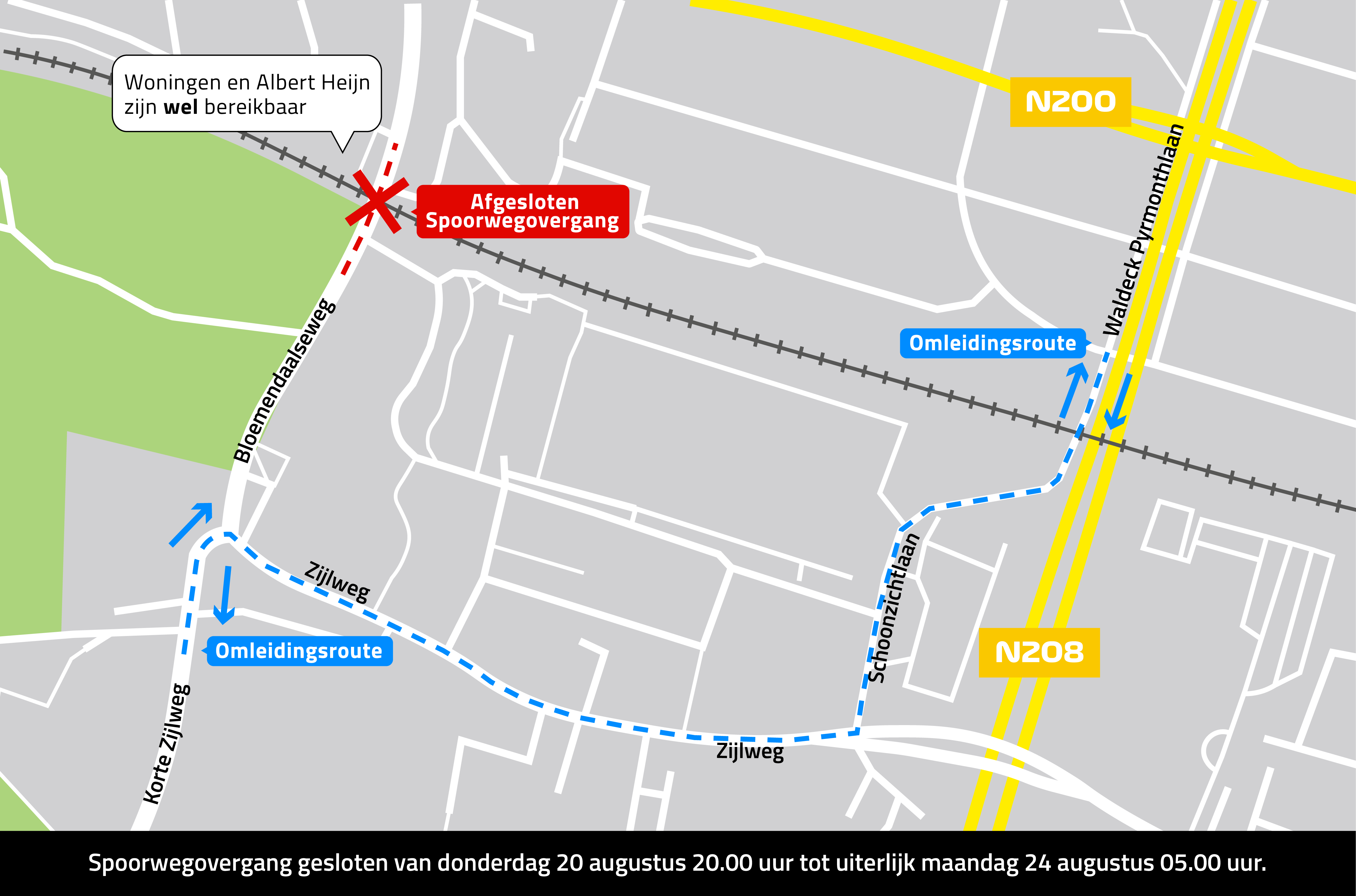 Let op! Er is een belangrijke omleidingsroute in Overveen. Klik hier voor een kaart van de omleidingsroute