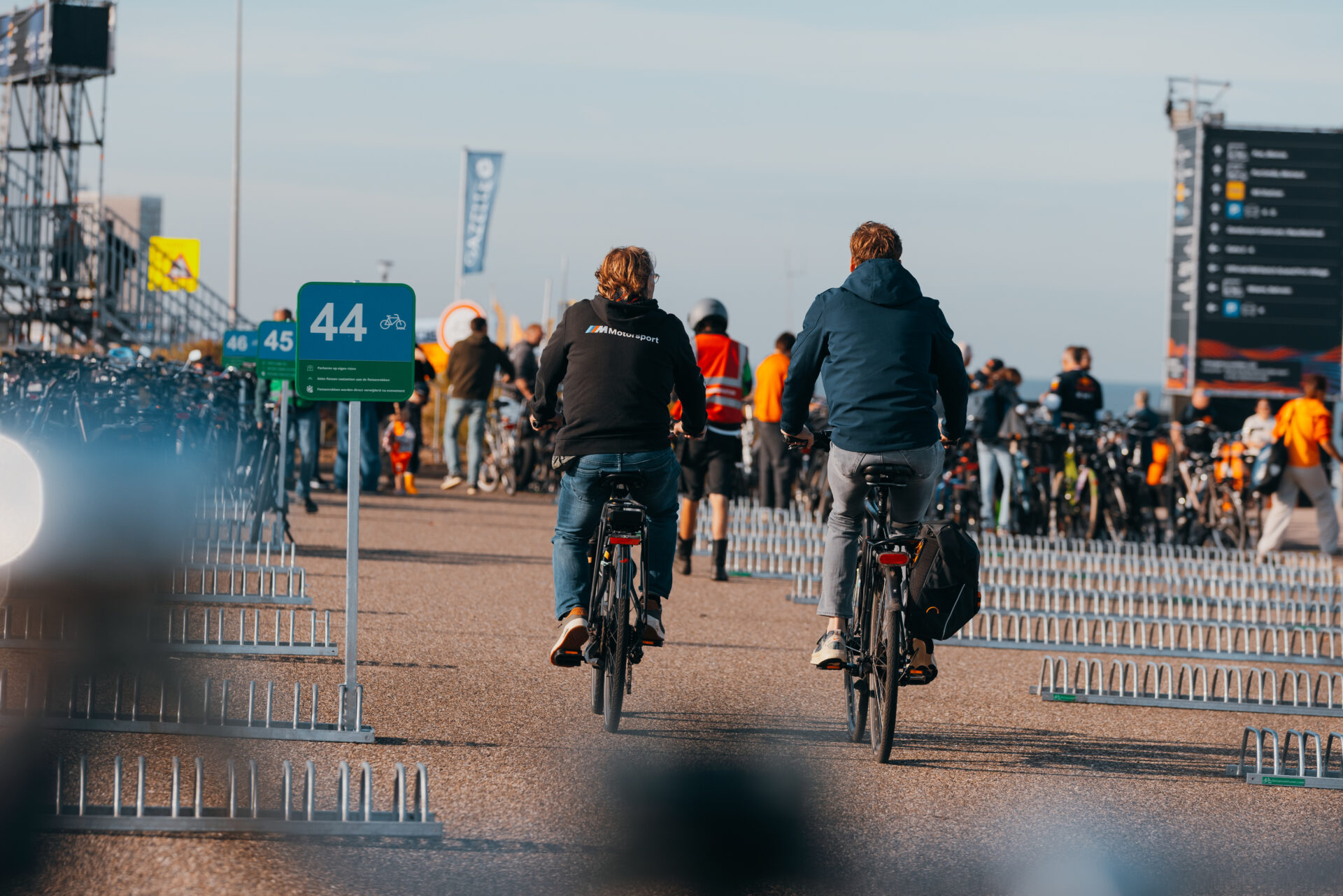 Nadat je de auto hebt geparkeerd bij een van de Park + Bike-locaties, leg je het laatste stuk naar het circuit af met de fiets. Geniet van de rit door de duinen, vermijd de drukte en bepaal zelf je aankomst- en vertrektijd. Parkeer je fiets bij een van de gratis fietsenstallingen of reserveer vooraf een plek bij een fietsenstalling onder toezicht.